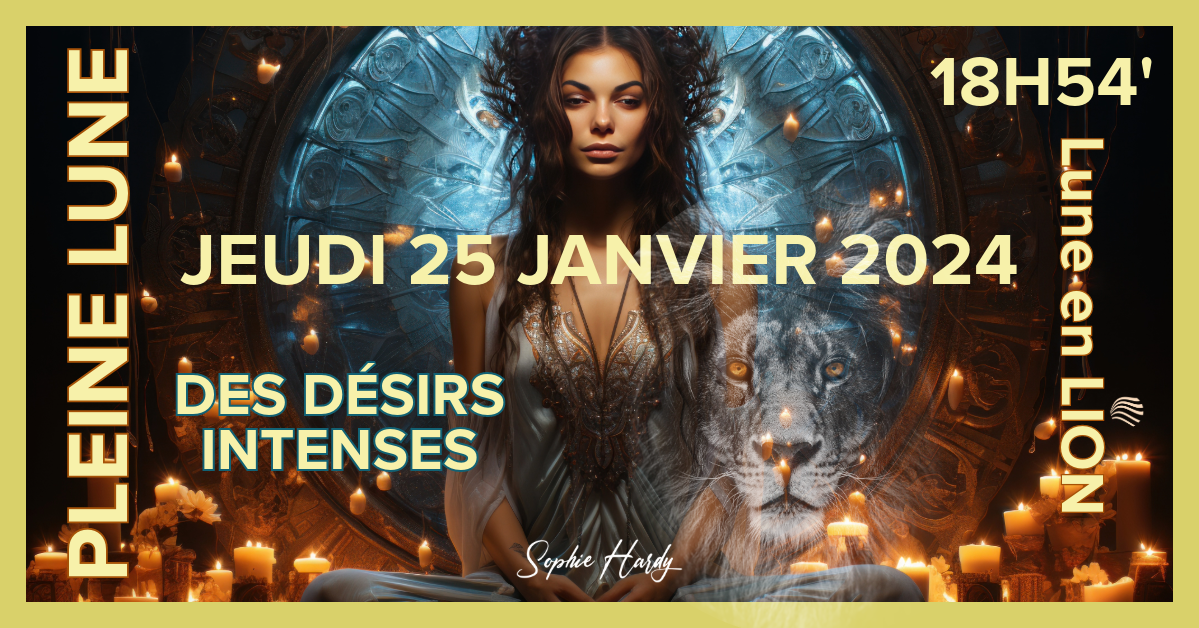 Cette phase lunaire du 25 janvier 2024 est propice à la mise en lumière de nos talents créatifs et à la transformation de notre enfant intérieur. Que vous soyez un artiste, un entrepreneur, un enseignant ou simplement une personne cherchant à exprimer son individualité, la Pleine Lune en Lion encourage chacun à mûrir, à grandir et s’agrandir dans l’humilité de la lumière et non dans l’esclavage de l’ego, à libérer sa créativité innée et à partager ses dons avec le monde.